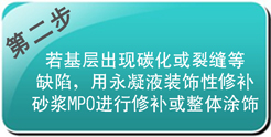 修复基层缺陷注:对于已严重破损的混凝土面,建议用装饰性修补砂浆MPO重新罩面,